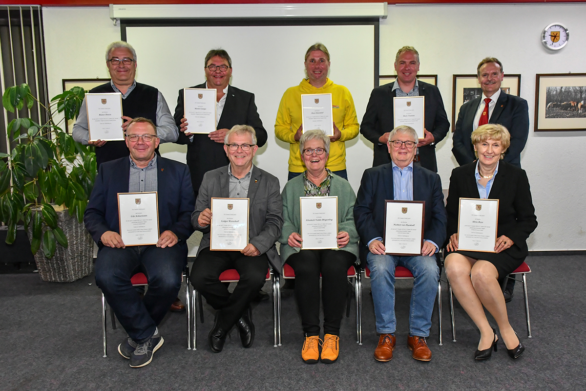 Für 25-jährige Mitgliedschaft erhielten , Elisabeth Vodde-Börgerding (SPD), Silvia Boye (CDU), Martin Fischer (SPD) und Jan-Dierk Brand (CDU) die Goldene Ehrennadel. Inge Olberding (SPD), Rolf Bergmann, Udo Schlarmann, Mario Stickfort und Ludger Westerhoff (alle CDU) die Silberne Ehrennadel.